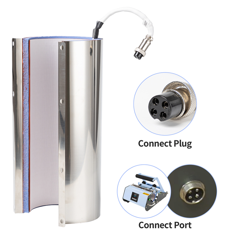 This heat press machine attachment is ideal for sublimation 30oz, 20oz,15oz, and 11oz tumblers and mugs.