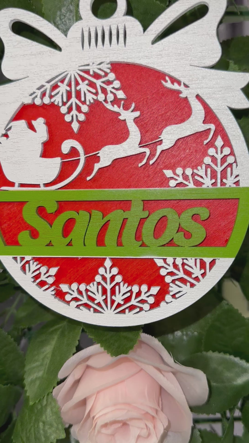Celebrate the season with our festive Christmas laser-cut ornament, beautifully painted in classic holiday colors of white, green, and red. This intricate design adds a touch of elegance to your tree or holiday décor, making it a perfect keepsake or gift.