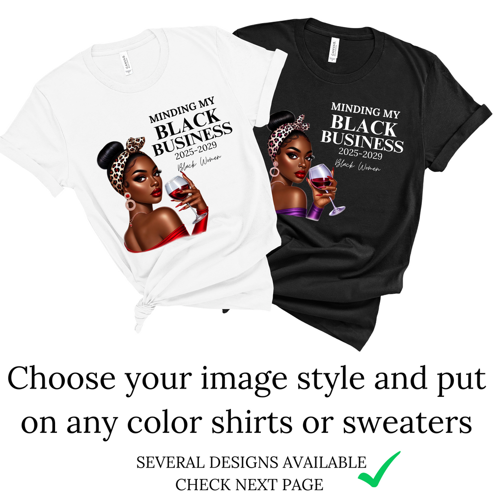 Embrace your power, beauty, and confidence with this stylish and empowering "Minding My Black Girl Magic" t-shirt. Designed to celebrate Black excellence and the strength of Black women, this shirt is perfect for anyone who proudly embodies the magic that comes with being unapologetically themselves. The years "2025-2029" represent a bold, forward-looking statement of growth, success, and resilience.