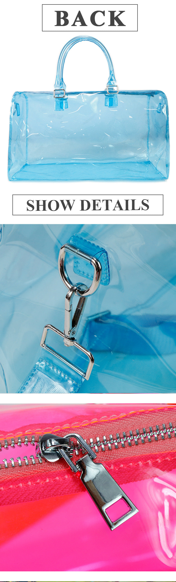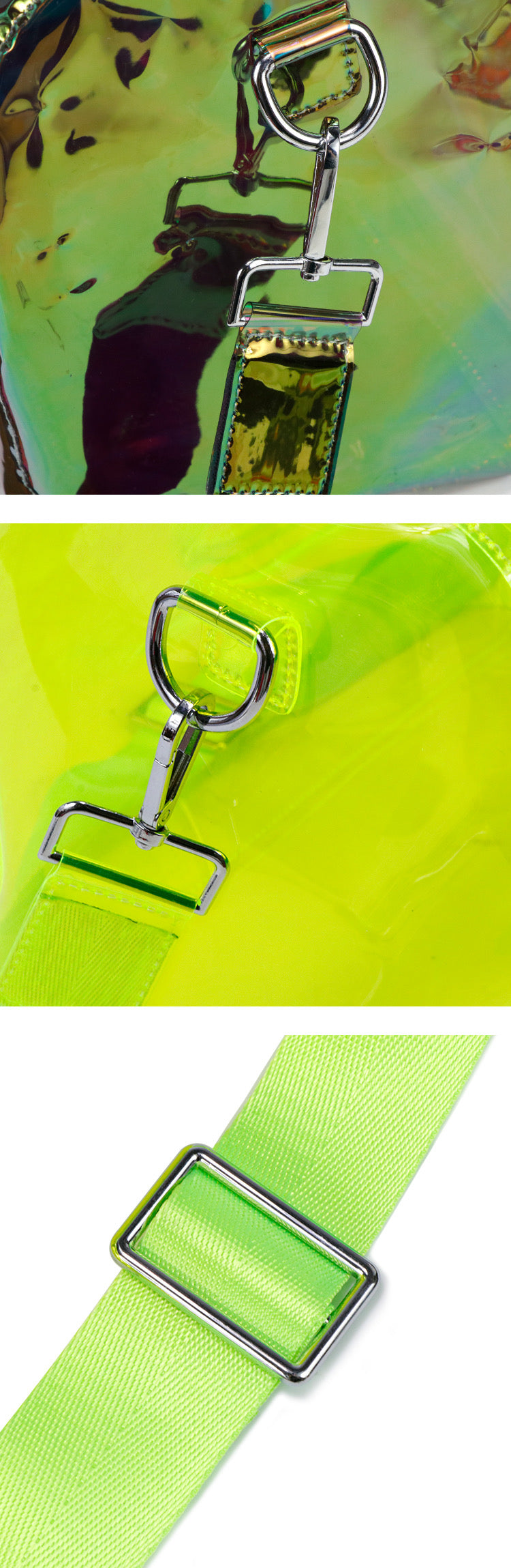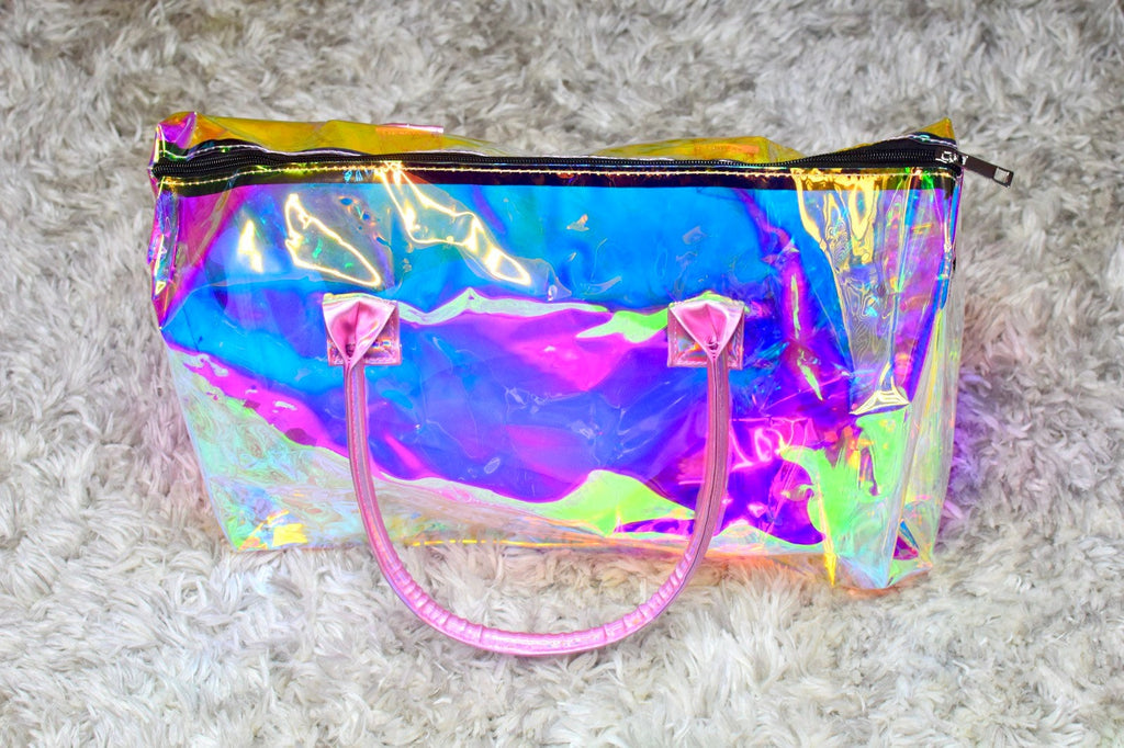 The holographic transparent duffel bags can be used for everyday outings. Creators can customize the bags with different wordings and designs using permanent vinyl.